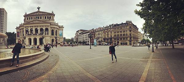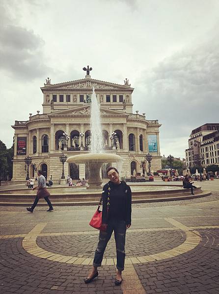 從我們的Hotel出發,走到法蘭克福中央火車站的正對面的凱撒大街(Kaiserstrasse)一直走,看到右邊👉是歐元塔,左邊👈穿過一片公園,就到了知名的老歌劇院!老歌劇院始建於1880年,依照巴黎歌劇院的建築形式而設計,氣勢雄偉,是法蘭克福最驕傲的公共建築。可戰火無情,二戰時被炸成廢墟一片,戰後政府耗資巨額重新修建,1981年重新落成。音樂神童莫札特6歲的首次演出就在這著名的老歌劇院,肅然起敬!