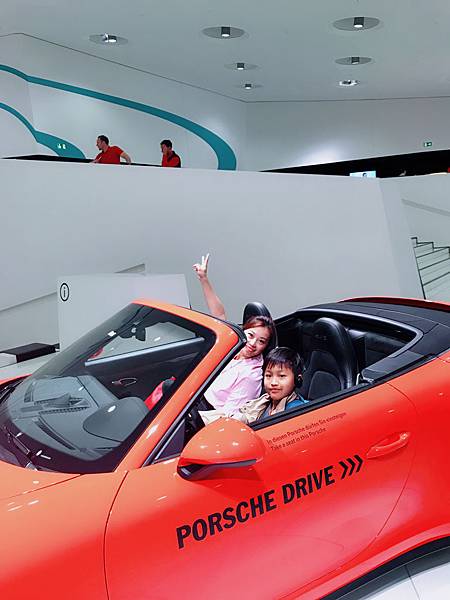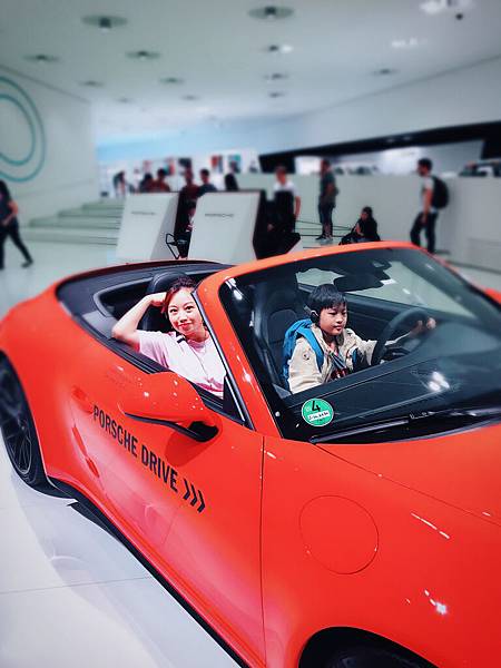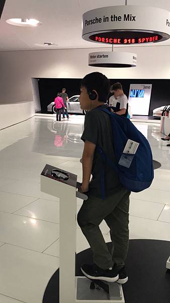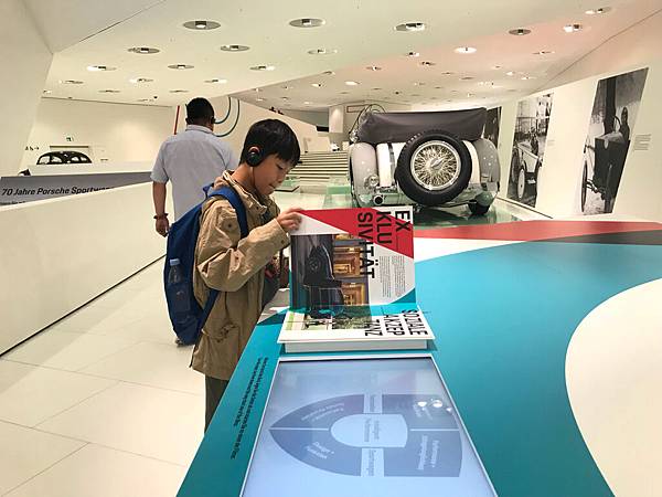 票價不貴,成人8歐,小孩4歐。開始進入保時捷歷史之旅,在超級寬敞的展館內,超過80台保時捷跑車熠熠生輝!我們家老爺和少爺看的可認真了,女生不懂車,戴著語音導覽,煞有其事地看了很久,拍了一些圖,給大家感受一下!