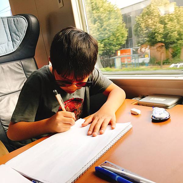 👆Wilson小朋友則是利用坐車時間完成他的遊記