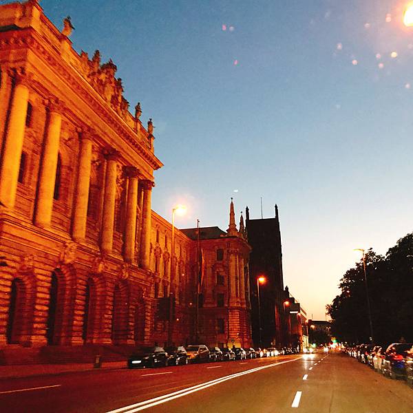 音樂會結束,已入夜,喜歡慕尼黑迷離的夜晚,少了白天的壯氣,多了一份嫵媚,月飄渺,燈影亦醉